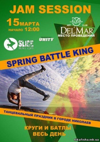 Традиционное мероприятие клуба "Слайс" - Jam Session "Spring Battle King". Весь день круги и батлы для всех танцоров города Николаев и не только!