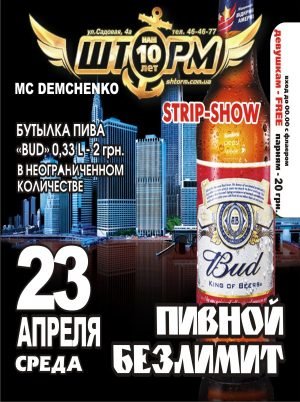 Пиво 0,33 L- 2 грн. всю ночь в неограниченном количестве!