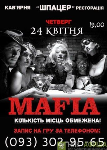 "MAFIA" — психологічна покрокова ролева гра з детективним сюжетом, яка моделює боротьбу інформованих одне про одного членів організованої меньшості з неорганізованою більшістю. Сюжет: жителі міста, знесилені від розгулу мафії, виносять рішення пересаджати у тюрму усіх мафіозі до єдиного. У відповідь мафія оголошує війну до повного знищення усіх законослухняних громадян. Такий опис правил гри дає "Вікіпедія".