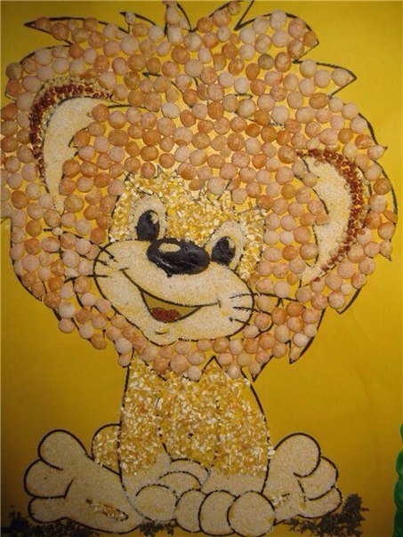 Мы займёмся изготовлением аппликации «Львёнок» из круп и бобовых.