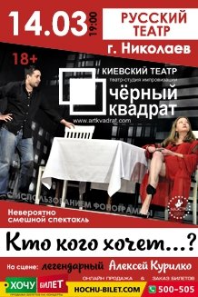 Спектакль «Кто кого хочет…?» - не исключение, а скорее подтверждение. Он о случайных неслучайных встречах и удивительных продолжениях, об остывших чувствах, которые требуют радикальных изменений (из легендарного проекта «До и После секса»). Мы говорим о настоящем и не стесняемся в выражениях! Спектакль этюдный, яркий, невероятно смешной, но и лиричный одновременно, как сам Алексей Курилко, который влюбляет в себя с первой секунды! А так же великолепная Ирина Когут.