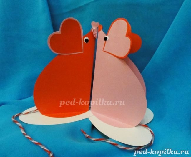 Мы займёмся изготовлением открытки «Неразлучные» из цветной бумаги.