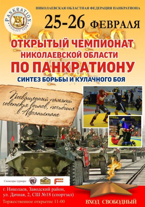 Клубы, Команды и Федерации по смешанным единоборствам и боевым искусствам! Приглашаем принять участие в нашем Чемпионате. По итогам соревнований будет формироваться Сборная команда Николаевской области для участия в Национальных Стартах 2017 г., а так же по результатам соревнований будут присуждаться Командные Кубки (1 день - детский, 2 день - взрослый), разряды согласно нормативам ЕСКУ.