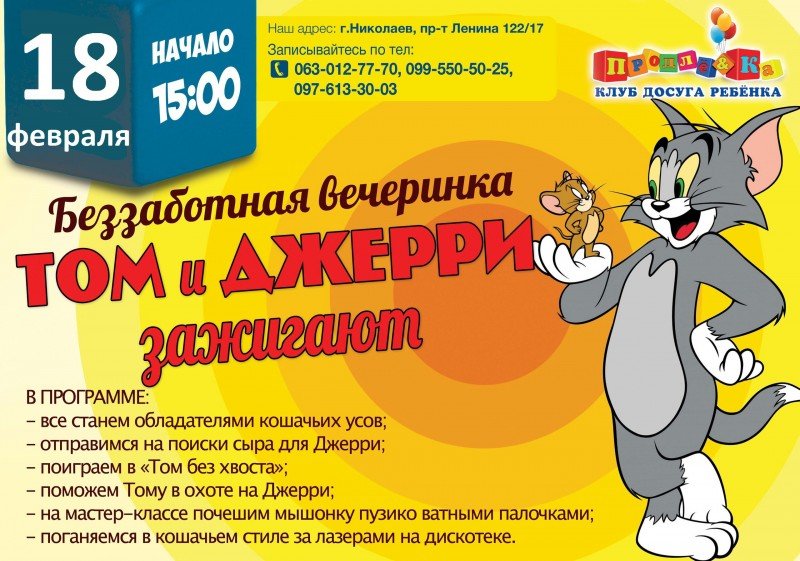 Всеми любимый мультсериал «Том и Джерри» повествует о бесконечном противостоянии неутомимого кота и изобретательного мышонка. Для многих детей эти забавные герои уже давно стали воплощением смеха, беззаботности и невероятных приключений. Так давайте и мы будем веселиться вмести с ними.