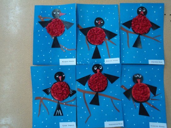 Мы займёмся изготовлением апликации "Снегири" из цветной бумаги и салфеток.