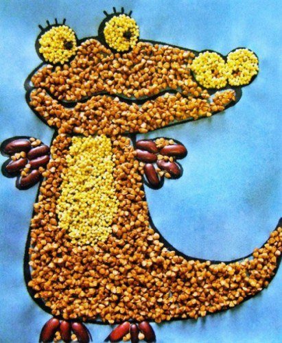Мы займёмся изготовлением поделки "Крокодил" из круп и семечек.