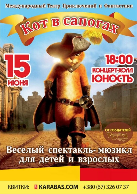 Киевский театр приключений и фантастики «Каскадер» представляет долгожданную премьеру удивительного и невероятно веселого спектакля-мюзикла «Кот в сапогах», поставленного по мотивам известной сказки Шарля Перро, любимой всеми с детства.