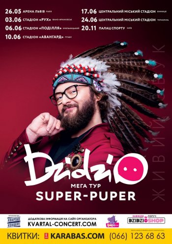 ВсеукраинскийМега тур Dzidzio "Super-Puper" насчитывает около 50 концертов и начнется 26 мая 2018 концертом на стадионе "Арена Львов".