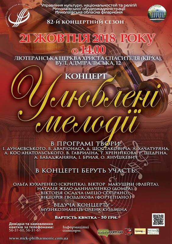 В программе произведения: И. Дунаевского, Б. Дварионаса, Д.Шостаковича, А.Хачатуряна и др. В исполнении: Виктории Осадчей (меццо - сопрано), Виктории гвоздичное (фортепиано), Ольги Кухаренко (скрипка), Виктора Макушина (флейта), Натальи Жело-Данильченко (домра).