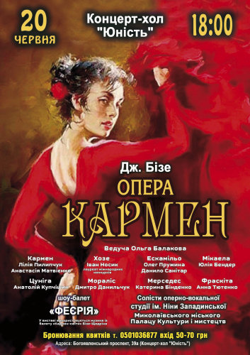 Дорогие друзья приглашаю Вас на премьеру оперы "Кармен" (оригинальная постановка,прекрасные певцы и высокопрофессиональные танцы шоу-балета "Феерия" подарят вам незабываемые эмоции) Ждём Вас с нетерпением!!!!!!!!!