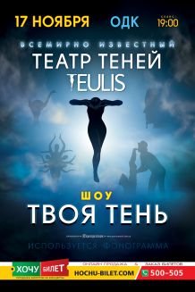 Театр Теней Teulis доказывает, что все фантазии можно притворить в жизнь с помощью теней человеческого тела. Вы окунетесь в завораживающие шоу и захватывающую дух хореографию,которые с легкостью пленят Ваше сердце...