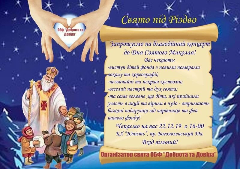 Каждый год волшебники и феи делают добрые дела-они дарят чудо под Рождество детям инклюзиии, Сирота и многодетным !!! Воспитанники фонда готовят яркие номера и дарят тепло и поздравления со сцены Приглашаем всех на благотворительный концерт от фонда "Доброта и Доверие"