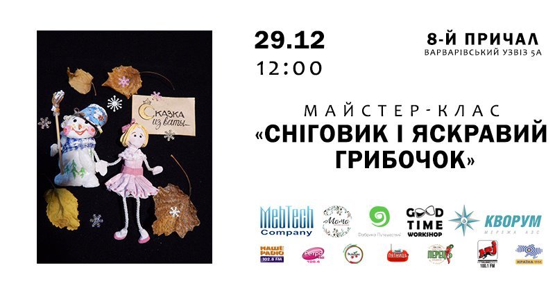 Навіть якщо ваша дитина ніколи нічого не створювала власноруч, з нашого МК вона з любов’ю понесе до дому свій витвір! Ми будемо ліпити та розписувати ляльок, сніговичків, грибочки.