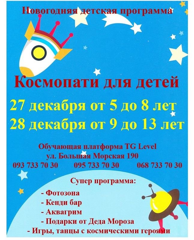 27.12 Космопати для детей от 5 до 8 лет и 28.12 от 8 до 13 лет