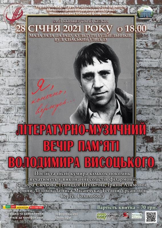 Приглашаем на литературно-музыкальный вечер памяти Владимира Высоцкого "Я, конечно, вернусь...".
