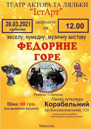 Театр актёра и куклы "ИстАрт" приглашает на весёлый, комедийный, музыкальный спектакль.