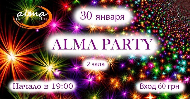 Друзья!! В эту субботу 30 января Dance Studio "Alma" приглашает всех на Alma Party!!