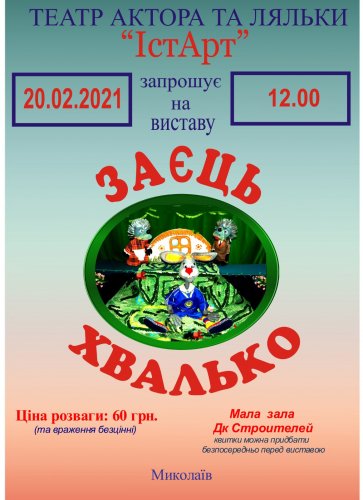 Театр актёра и куклы "ИстАрт" приглашает на спектакль "Заяц хвастунишка".
