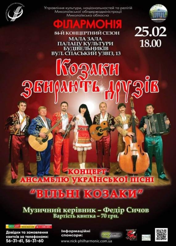 Приглашаем всех желающих на концерт ансамбля украинской песни "Вольные казаки".