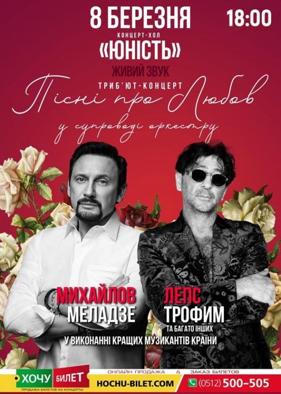 Лучшие голоса страны в сопровождении оркестра исполнят современные «Песни о любви». В программе вечера репертуар от Григория Лепса и Стаса Михайлова до Сергея Трофимова и Валерия Меладзе, а также атмосфера праздника в первые весенние дни этого года.