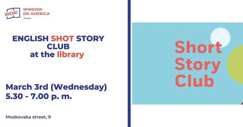 Mykolaiv Window on America invites you to the English Short Story Club on the 3rd of March at 5.30 p. m.