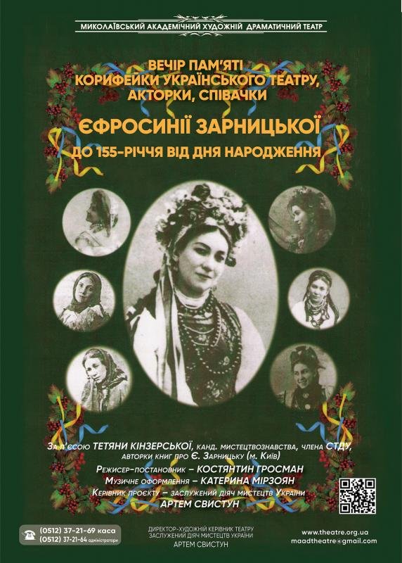 Вечер памяти корифея украинского театра, украинской театрализованной актрисы, певицы - Ефросиньи Зарницкой.