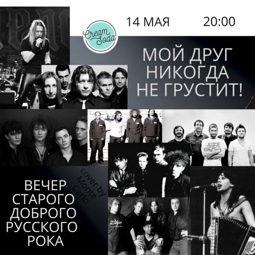 Приглашаем тебя испить этот вечер вместе с нами под песни старого доброго русского рока в исполнении кавер группы "Monte Carlo".