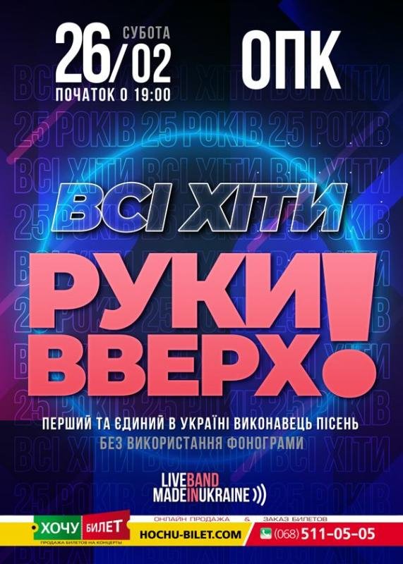 В шоу «Все Хиты Руки Вверх!» задействовано сотни киловатт звука и света. Песни исполняет вокалист, который беспрепятственно и законно может находиться на территории Украины и который официально имеет право исполнять все песни, так как Сергею Жукову и его брату Михаилу запрещен въезд в Украину. Важно отметить, что шоу исполняется музыкантами вживую без использования фонограммы. Концертная программа продолжительностью более полутора часов состоит исключительно из хитов за 25 лет.