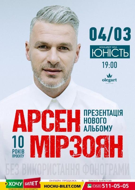 8 ноября на сцене концерт-холла "ЮНОСТЬ" состоится большой сольный концерт Арсена Мирзояна.