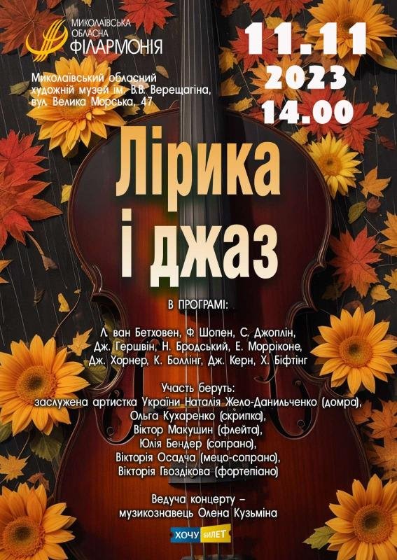 Друзі, ідеальна можливість для кожного поціновувача справжньої музики насолодитися живим якісним звучанням на концерті солістів філармонії "Лірика і Джаз".