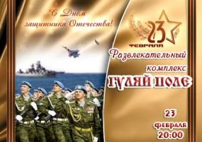 Развлекательный комплекс "Гуляй поле" приглашает вас отметить этот праздник мужества и отваги вместе снами! Для вас в этот вечер тематическая развлекательная программа с веселыми конкурсами.