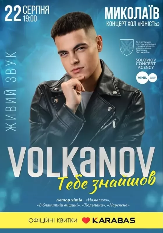 У Миколаєві Volkanov – це свіжий подих сучасної української музики. Молодий співак, автор та композитор родом з тимчасового окупованого Бердянська. Відомим Дмитро став після своєї участі у вокальному проєкті «Х-Фактор», ставши суперфіналістом 9-го сезону в команді Андрія Данилка. Наставник розгледів талант юнака й після проєкту запросив підопічного гастролювати в складі команди Вєрки Сердючки. Та на даний момент Дмитро є автором власних пісень, чимало з яких встигли стати хітами. Наприклад, трек «Намалюю» потрапив у топ-чарти, а кількість його переглядів на YouTube сягнула 5 млн.