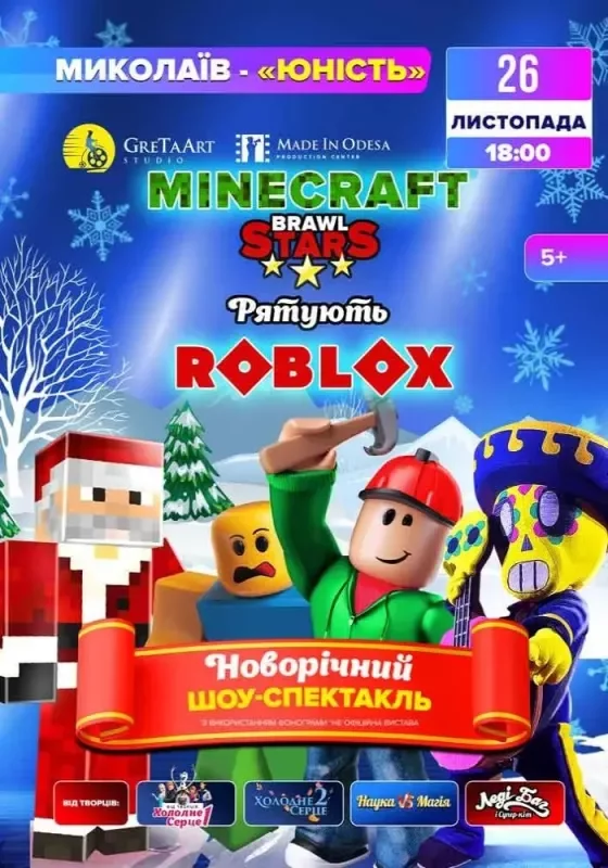 «Майнкрафт та Бравл Старс рятують Роблокс» – це захопливе інтерактивне шоу з улюбленими героями дітлахів. Minecraft, Brawl Stars та Roblox – ігрові світи, якими захоплюються усі маленькі гравці. Тому квиток на шоу стане для них найкращим подарунком!