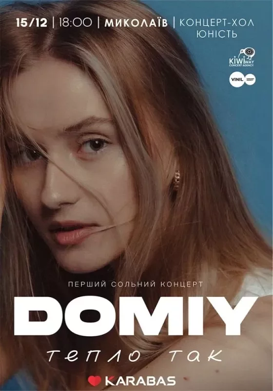 Зустрічайте, ніжна та яскрава DOMIY вперше дає сольний концерт. Зірка трендів YouTube та TikTok зробить цей вечір дивовижним і особливим. Приходьте, щоб почути улюблені хіти наживо!