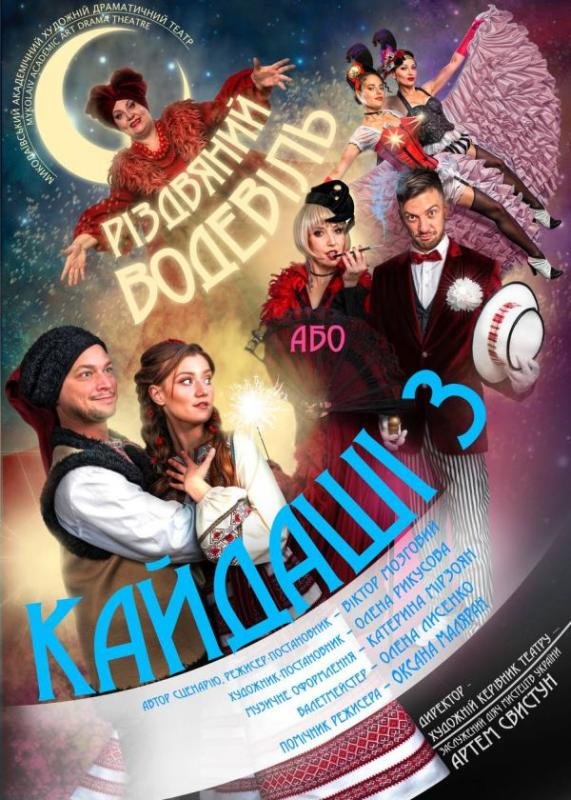 Саме для вас, наші любі глядачі, прем’єрний показ театрального квартирника «Різдвяний водевіль, або Кайдаші-3»! Це продовження історії родини Кайдашів, яку наші глядачі вже бачили у попередні роки. Яка ж пригода спіткає улюблених героїв цього року? Чим продовжиться майстерно закручений сюжет?
