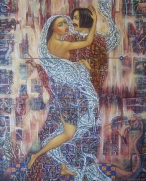 На обозрение представлены 12 полотен, на которых изображены различные мифологические, религиозные и «культурные» персонажи или мотивы в окружении богатой атрибутики. По структуре композиционного построения и типу телесности не только существ человеческих, но и прочей фауны, работы напоминают иконы с клеймами.