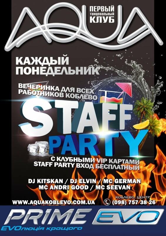 Вечеринка для всех работников Коблево! Всю ночь для вас будут играть Dj Kitskan, Dj Elvin, Mc Snake, Mc Gvozd, Mc Seevan.
