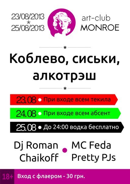 P.S. На последок, чуть не забыл. Играть будет Dj Roman Chaikoff - потому что умеет хорошо играть Проводником в мир счастья будет Mс Feda - потому что умеет хорошо говорить!