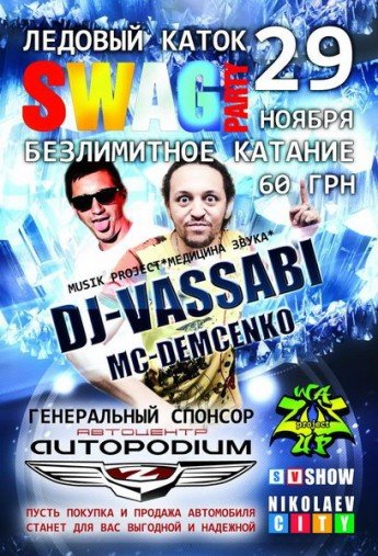 Впервые в Николаеве - "Swag Party " при участии музыкального проекта "Медицина звука" а точнее в его составе "Dj Vassabi & Demchenko MC".