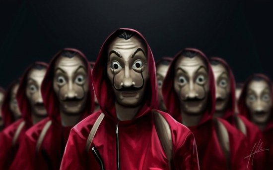 уникальный визуальный стиль (красные костюмы и маски Сальвадора Дали)