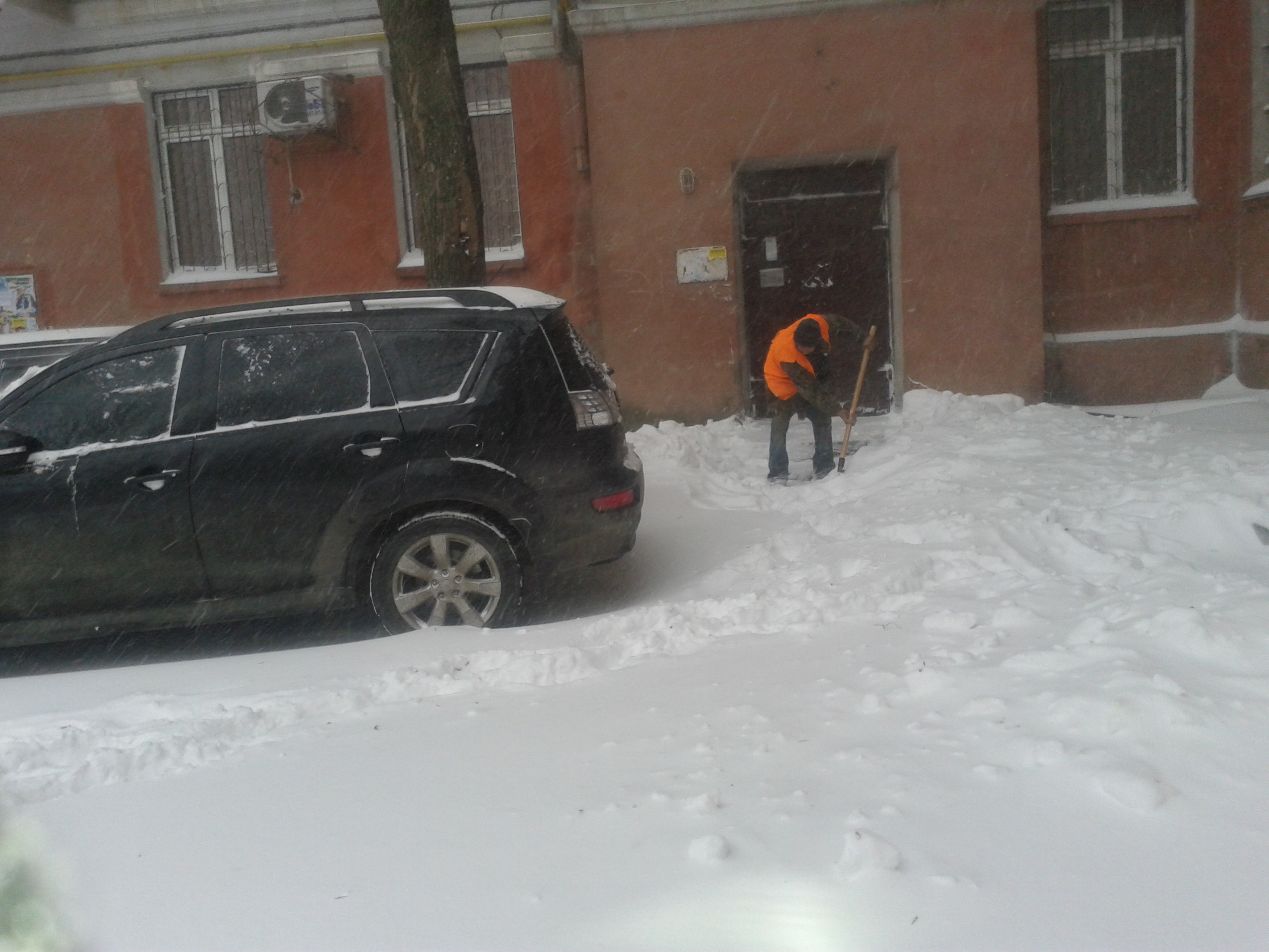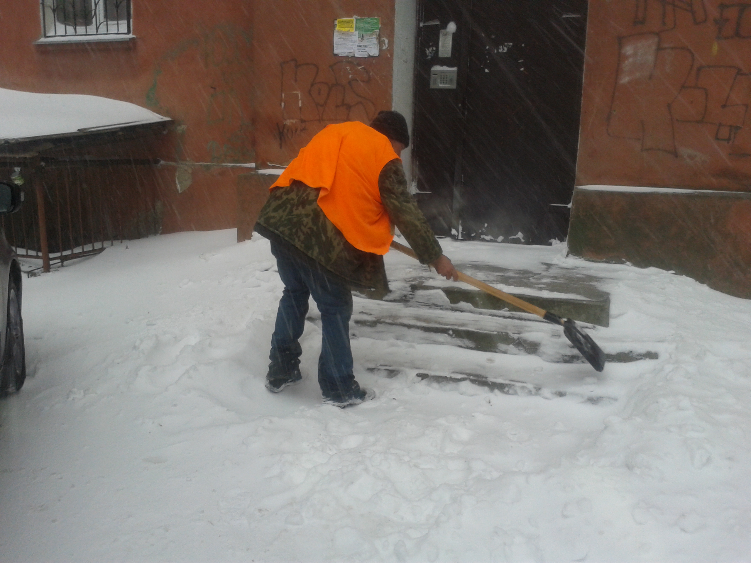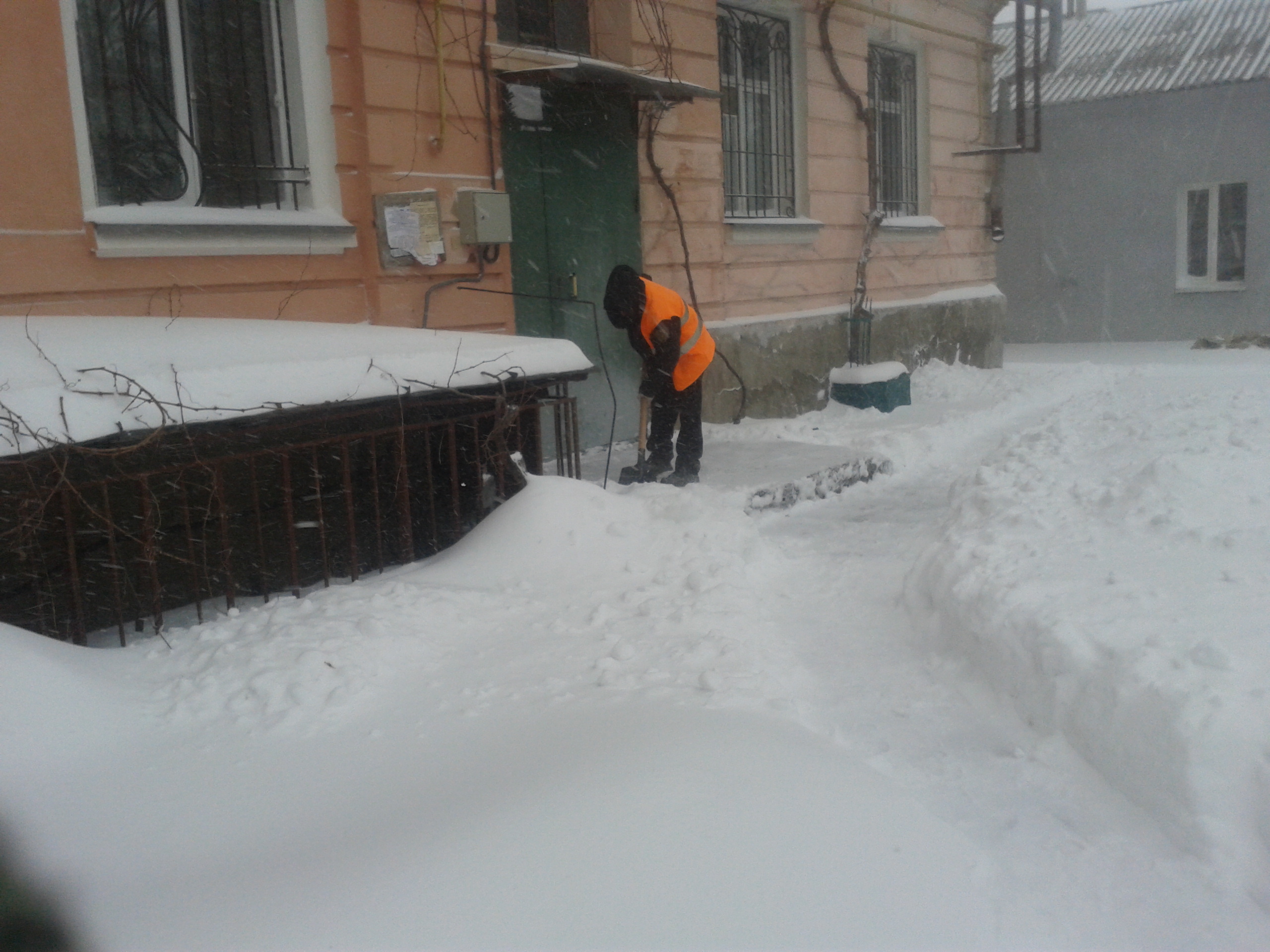 В центре Николаева коммунальщики расчищают прилегающие к домам территории, пешеходные дорожки, подъезды и подходы к контейнерным площадкам.