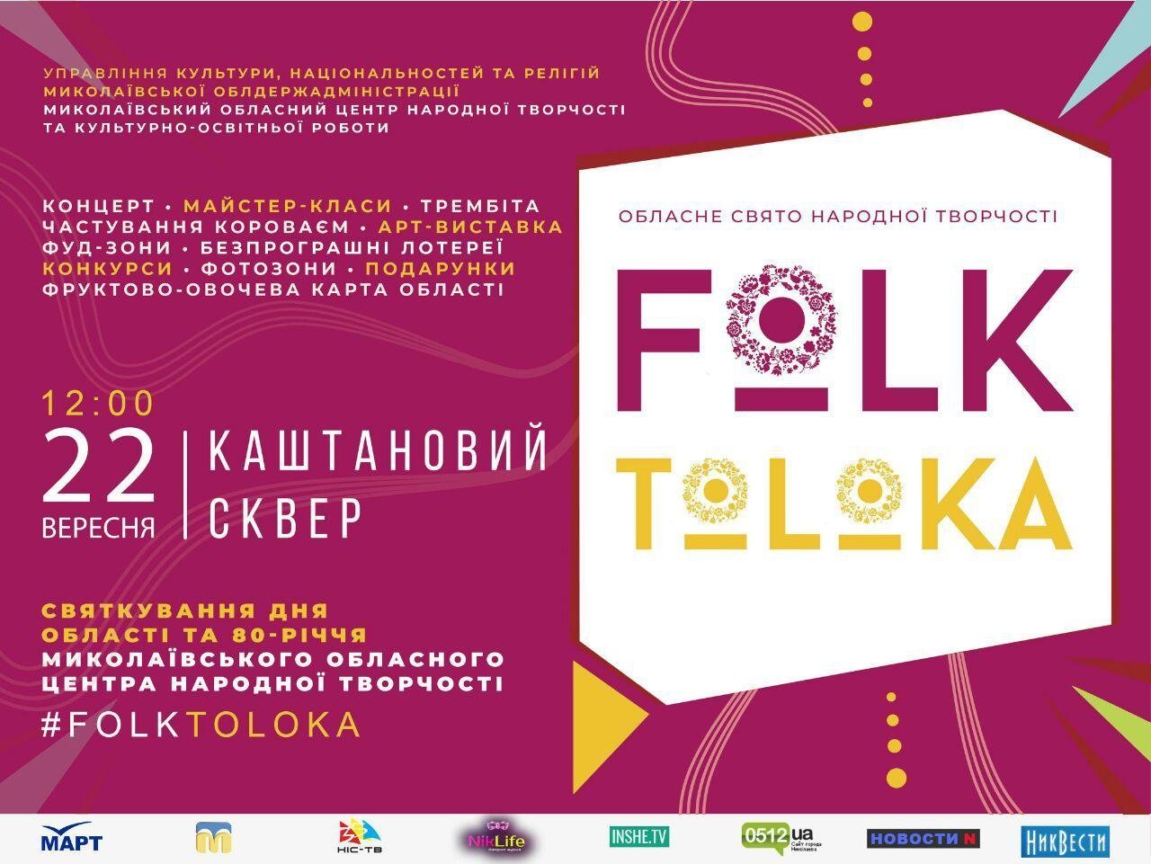 Уже в эти выходные в Каштановом сквере ко Дню области пройдет масштабное театрализованное зрелище "Folk-toloka 2018". У вас будет уникальная возможность увидеть все культурные наследие Николаевщины.