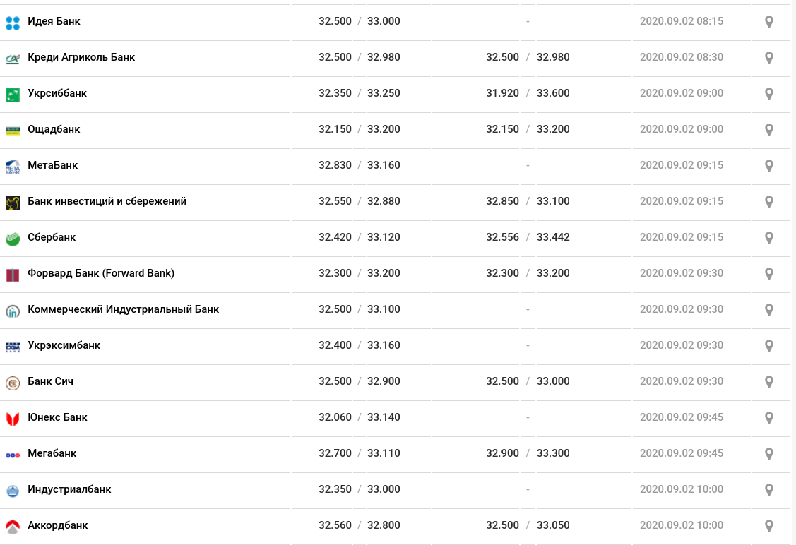 Стоимость евро в диапазоне от 32, 800 гривен и до 33,250 гривен.