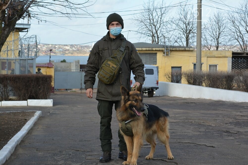 На территории стрелкового батальона в/ч №3039 НГУ работают кинологи. Максим - один из них и боец срочной службы. Он говорит, что дрессировка собак начинается с 7-8 месячного возраста. Так, собака на службе может пребывать до восьми лет. На службу в Нацгвардию берут отобранные породы служебных собак, например немецких овчарок или ротвейлеров. Так как в таких породах заложены необходимые качества. всего в Николаеском гарнизоне Нацгвардии работает 12 кинологов с семью патрульными и шестью конвойными собаками.