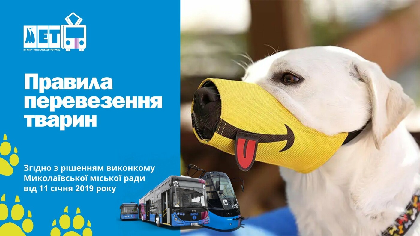 Комунальне підприємство "Миколаївелектротранс" звернулося до пасажирів із нагадуванням про правила перевезення тварин у міському електротранспорті. Це необхідно для забезпечення комфорту та безпеки всіх, хто користується трамваями й тролейбусами.