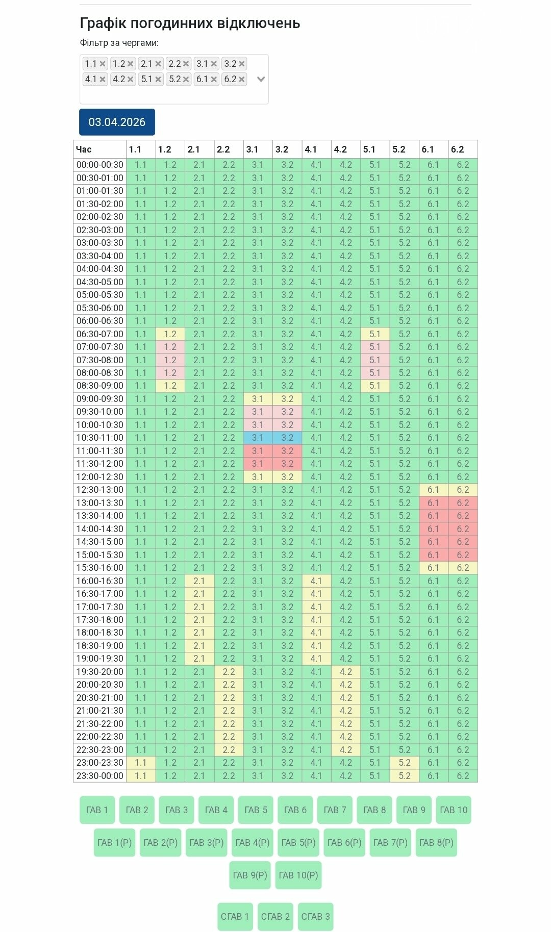 11:00 Підчерги 3.1 та 3.2 залишаються знеструмлені до 12:30. З 12:30 плануємо відключити 6.1 та 6.2. Актуальний на 11:00 графік дивіться на off.energy.mk.ua