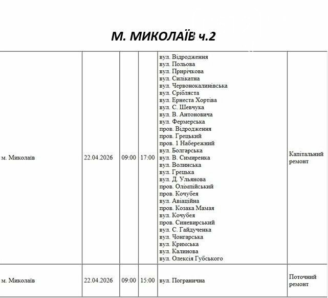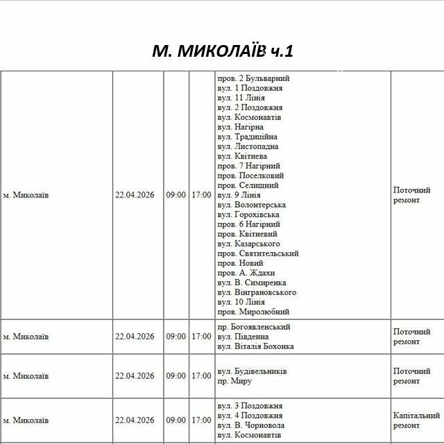 22 квітня у Миколаєві пройдуть планові відключення електроенергії.