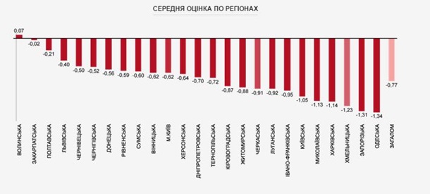 Наименьше взяток заметили в Волынской, Закарпатской и Полтавской областях.