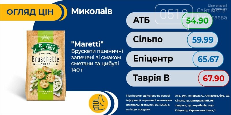 Тільки актуальна інформація про всі ціни на продукти в Миколаєва. Регулярні оновлення про акції та знижки швидко зорієнтують вас і допоможуть зробити правильний вибір.