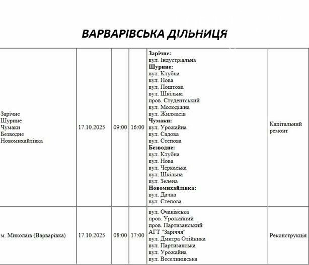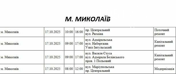 17 октября в Николаевской области пройдут плановые отключения электроэнергии.